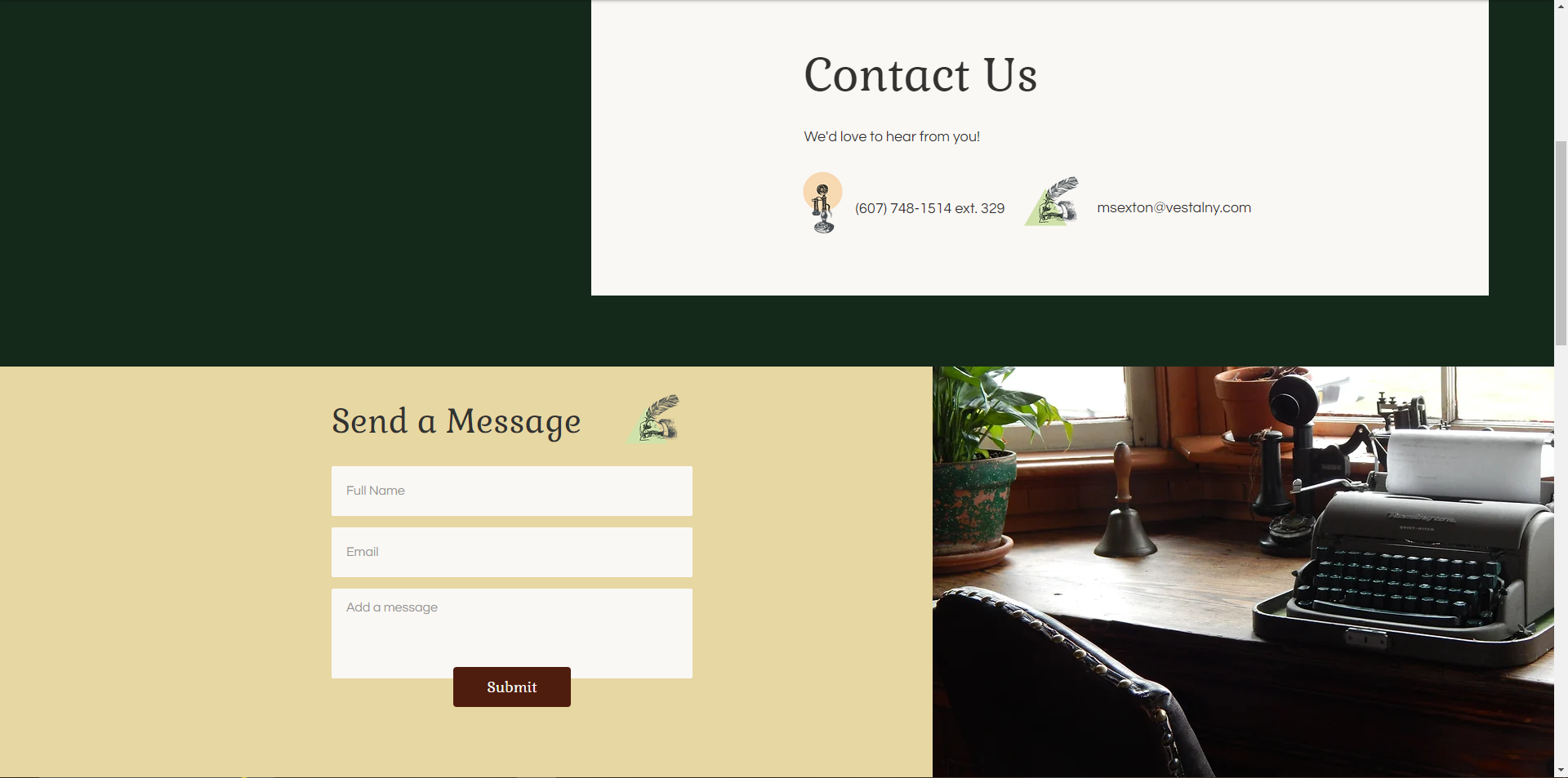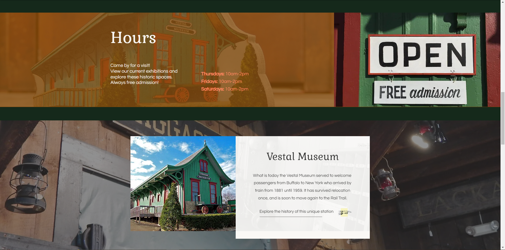 As a Web Design Intern at the Vestal Museum near Binghamton, NY, I reimagined and executed a fresh website design for the museum. I spent time engaging with the Museum Director, photographing the space, and witnessing the relationship the museum has with their community to create a more authentic and whimsical site.